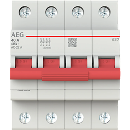 De AEG 2CDD274188R0040 hoofdschakelaar is een 4-polig schakelapparaat met een nominale stroom van 40 ampère. Deze lastscheider maakt elektrische installaties spanningsvrij voor onderhoud of veilige werkzaamheden. Met vier polen schakel je zowel de drie fasen als de nul uit, wat zorgt voor een volledige scheiding van de voeding.