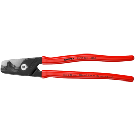 De KNIPEX StepCut® XL kabelschaar met getrapte snijrand (95 11 225) is ontworpen voor het krachtig en precies knippen van koper- en aluminiumkabels met verschillende adertypes. Dankzij de geoptimaliseerde snijkanten, het sterke scharnier en de lange benen biedt deze kabelschaar een hoge knipcapaciteit bij minimale inspanning. De StepCut XL knipt moeiteloos eenaderige kabels tot 35 mm², meeraderige kabels tot 70 mm² en fijnaderige kabels tot 120 mm², zonder gebruik van een ratelmechanisme.
