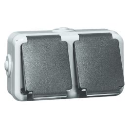 PEHA opbouw stopcontact met randaarde 2-voudig met klapdeksel IP54 spatwaterdicht (D 6632 WAB)