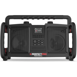 PerfectPro RockBull. Dit is een radio die respect afdwingt. Bijvoorbeeld in grote werkplaatsen, magazijnen en stallen. Een professionele audiomachine met een sterke set speakers, woofers en tweeters. Dit is meer dan radio: dit is een mobiele HIFI-installatie die z’n gelijke niet kent. De radio is zowel op 230V als met ingebouwde Lithium-accu (16-20 uur) te gebruiken. Erg handig: de radio is uitgerust met een ingebouwde acculader. De ultiem grote 2x25W Woofer, 2 tweeters en high performance versterker zorgt voor een prachtig geluid.