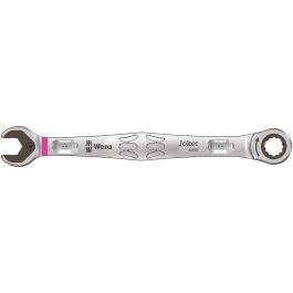 Hoogwaardige, metrische ringratel-steeksleutels van Wera: Alles wat een sleutel moet kunnen. En nog veel meer. Sneller, beter, mooier. Kortom: een echte Joker. De nieuwe generatie steek-ringratelsleutels. Voor zeskantschroeven en -moeren. Met vasthoudfunctie via metalen plaat in bek om schroeven en moeren niet te verliezen. De verwisselbare metalen plaat in de bek houdt met extra harde tanden schroeven en moeren vast en verkleint het risico op wegglijden. De geïntegreerde eindaanslag voorkomt het wegglijden naar beneden van de schroefkop en maakt hoge draaimomenten mogelijk. De intelligente dubbele zeskant-geometrie zorgt voor een sluitende verbinding met schroef of moer en vermindert zo het risico op wegglijden. Dankzij de terughaalhoek van slechts 30° behoort het tijdrovende omkeren van de sleutel tijdens het schroeven tot het verleden. Ratelmechanisme aan de ringzijde met uiterst fijne vertanding (80 tanden) voor flexibiliteit, ook op plekken waar weinig plaats is. De speciale smeedvorm maakt de overbrenging van hoge draaimomenten mogelijk en geeft het geheel een hoge buigstijfheid. Gemaakt van sterk chroom-molybdeen staal met nikkel-chroom coating voor een hoge bescherming tegen corrosie. Met "Take it easy toolfinder": Kleurcodering op maat.
